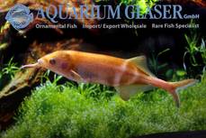 Etwas anders sieht es bei dem Tier aus, das wir Ihnen heute vorstellen wollen: ein goldgelber Wildfang von Gnathonemus petersii, dem Elefanten-Rüsselfisch. Die Art an sich ist alles andere als selten, wir können sie ganzjährig zu moderaten Preisen in nahezu beliebiger Stückzahl anbieten. In weiten Teilen des großen Verbreitungsgebietes gehört der Elefanten-Rüsselfisch zu den Alltags-Speisefischen der ärmeren Teile der Bevölkerung, weil er häufig und billig ist. Aber auch ein Berufsfischer am Niger kann sein Leben lang täglich Dutzende und Hunderte Elefanten-Rüsselfische gefangen haben, ohne jemals ein goldgelbes Exemplar zu Gesicht bekommen zu haben. Wahrscheinlich ist das Tier, das derzeit bei uns schwimmt, das weltweit einzige derzeit lebende Exemplar. Und das kann man nun wahrlich „selten“ nennen…