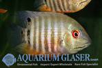 Dem Namen nach kennen viele Aquarianer diesen schönen Buntbarsch, aber im Handel ist er eher selten, schon gleich gar nicht als Wildfang. Aquarium Glaser hat jetzt sehr schöne Wildfänge aus Venezuela erhalten. Derzeit sind die Tiere 7-10 cm lang und beginnen gerade, sich geschlechtlich zu differenzieren. Augenfleckbuntbarsche können bis zu 20 cm lang werden und sind verhältnismäßig friedliche, pflanzenschonende Buntbarsche.